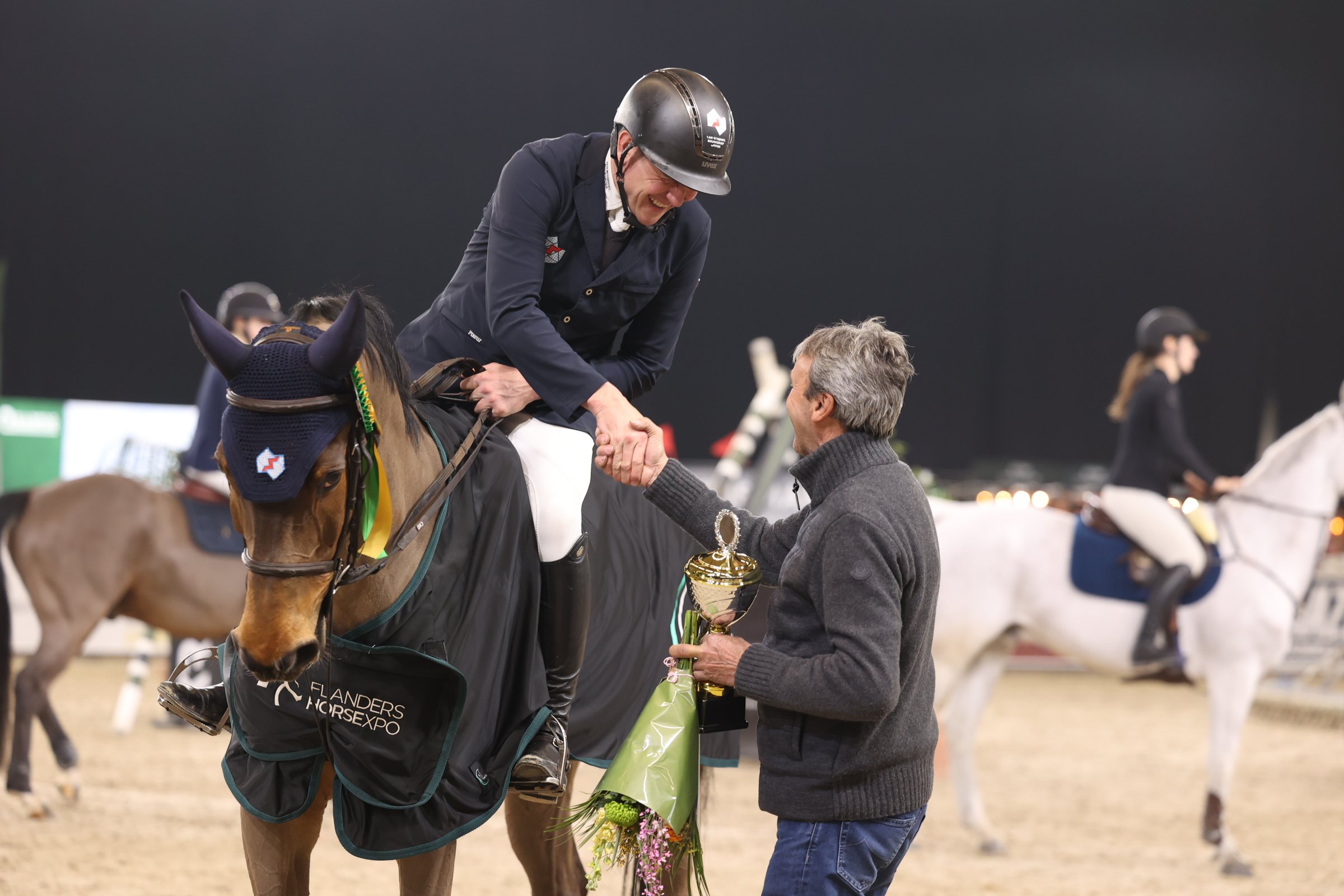 Op de tweede dag van de Flanders Horse Expo in Gent wist Nederland de overwinning te halen in de CSI2* 1m30. Piet Raijmakers Jr neemt de winst mee naar huis!