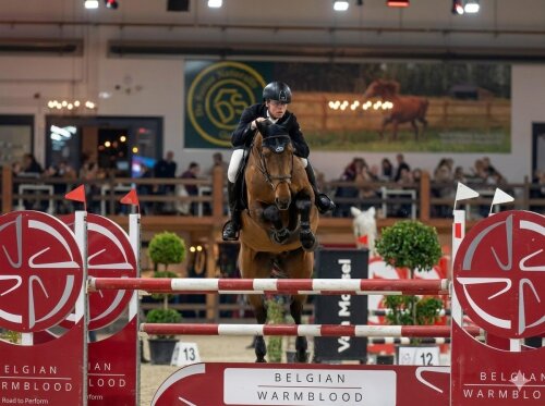 Dirk Geerinckx zijn gefokte Candy Luck Z (Comme Il Faut) zorgde voor extase tijdens de 1.55m CSI3* Grand Prix in Neumünster. Na een barrage met tien sprong Willem Greve met de 11-jarige merrie, naar de winst.